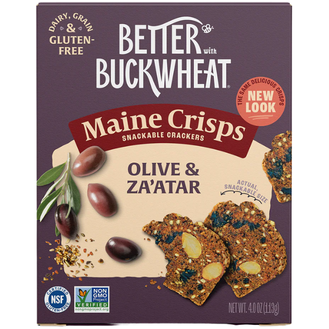 Olive & Za'atar Crisps achieve a perfect balance - nutty almonds and sesame seeds mingle with rich olives and a warm Za'atar spice medley. There’s earthy buckwheat mellowed with a touch of honey. Perfect for dipping in your favorite hummus or try topping with whipped feta and smoked fish.