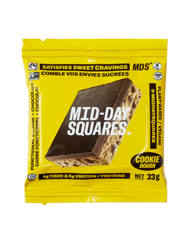 Mid-Day Squares were made for you. Perfectly designed to stop your cravings in between meals. Each square is packed with 6g plant protein, real chocolate, and a source of fibre.