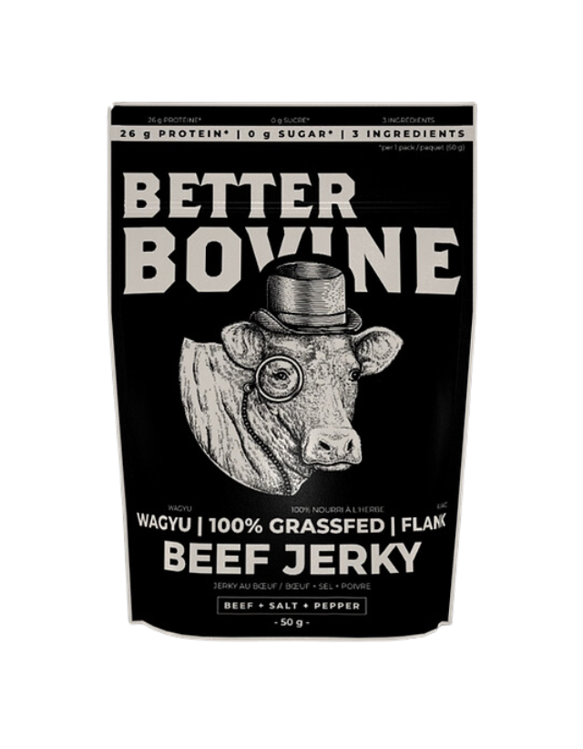 Wagyu flank steak slowly dehydrated and rendered to perfection. Made with only 3 ingredients: beef, salt, and pepper.